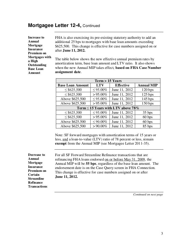 FHA loans are insured by the Federal Housing Administration. FHA refinance existing FHA loans. SF forward mortgages with amortization terms of 15 years or less, and a loan to value ratio of 78% or less, remain exempt from the Annual MIP (Mortgagee Letter ... View This Document
